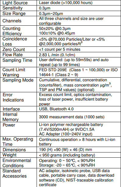 • Simultaneously measures 3 user configurable particle sizes