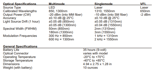 Models can include different combinations of singlemode, multimode, and/or VFL light sources