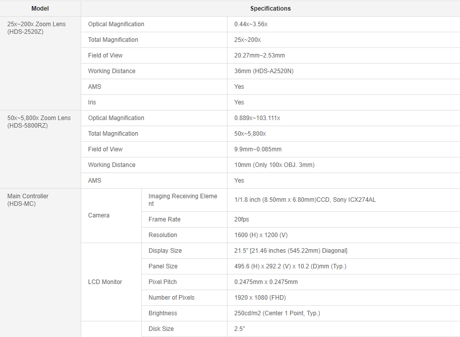The HDS series also offers the widest magnification range in the market with a zoom lens.