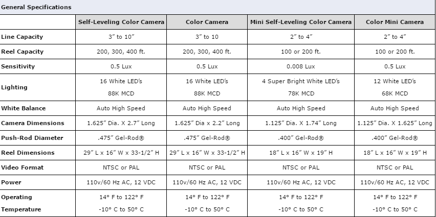 Self-Leveling Camera - Automatically keeps picture right side up as the camera glides through theline.Just 1.625” in diameter with 16 Bright-White LED’s to illuminate up to 10” lines.
