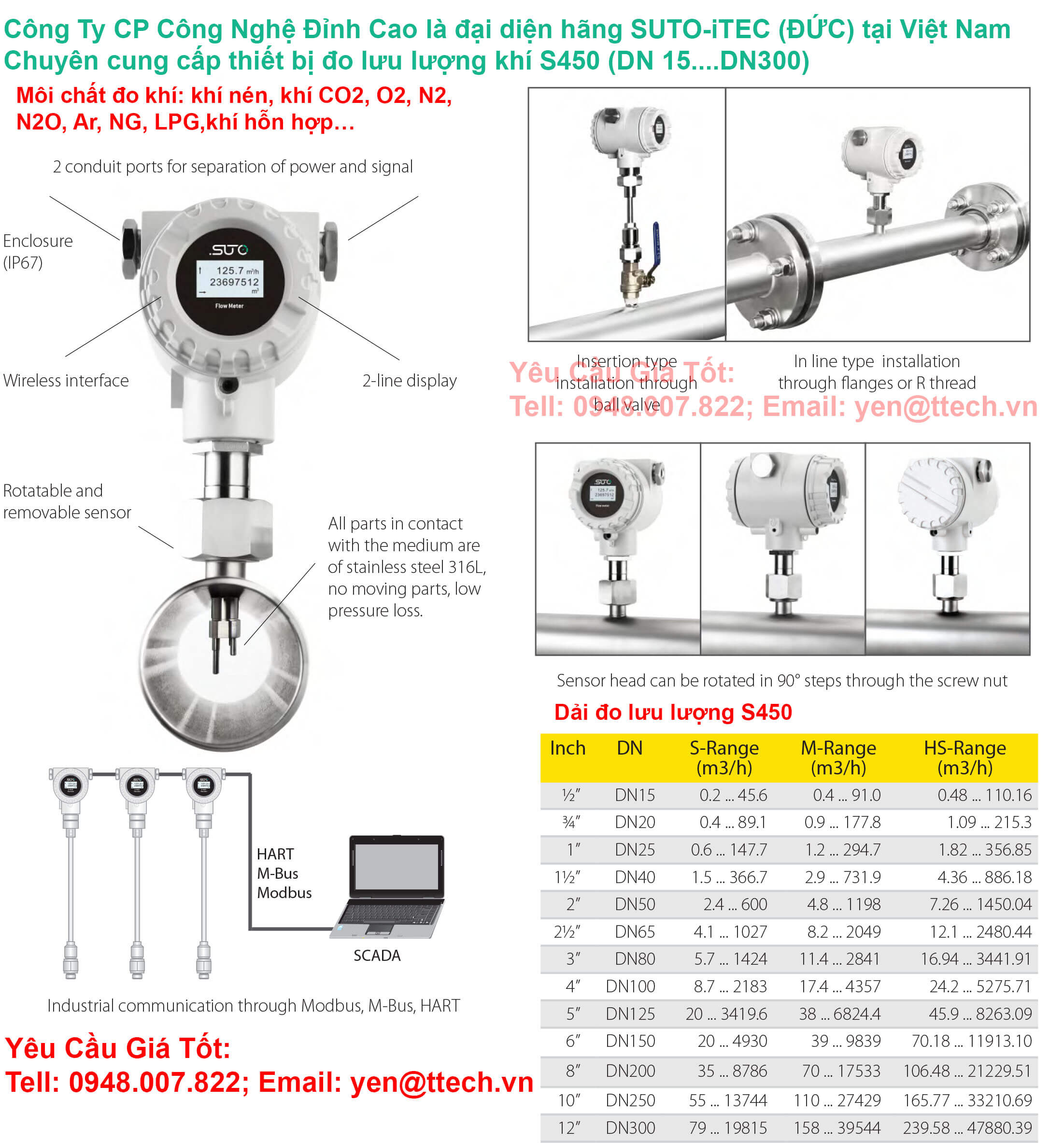 Thông số kỹ thuật thiết bị đo lưu lượng khí S450 SUTO-itec